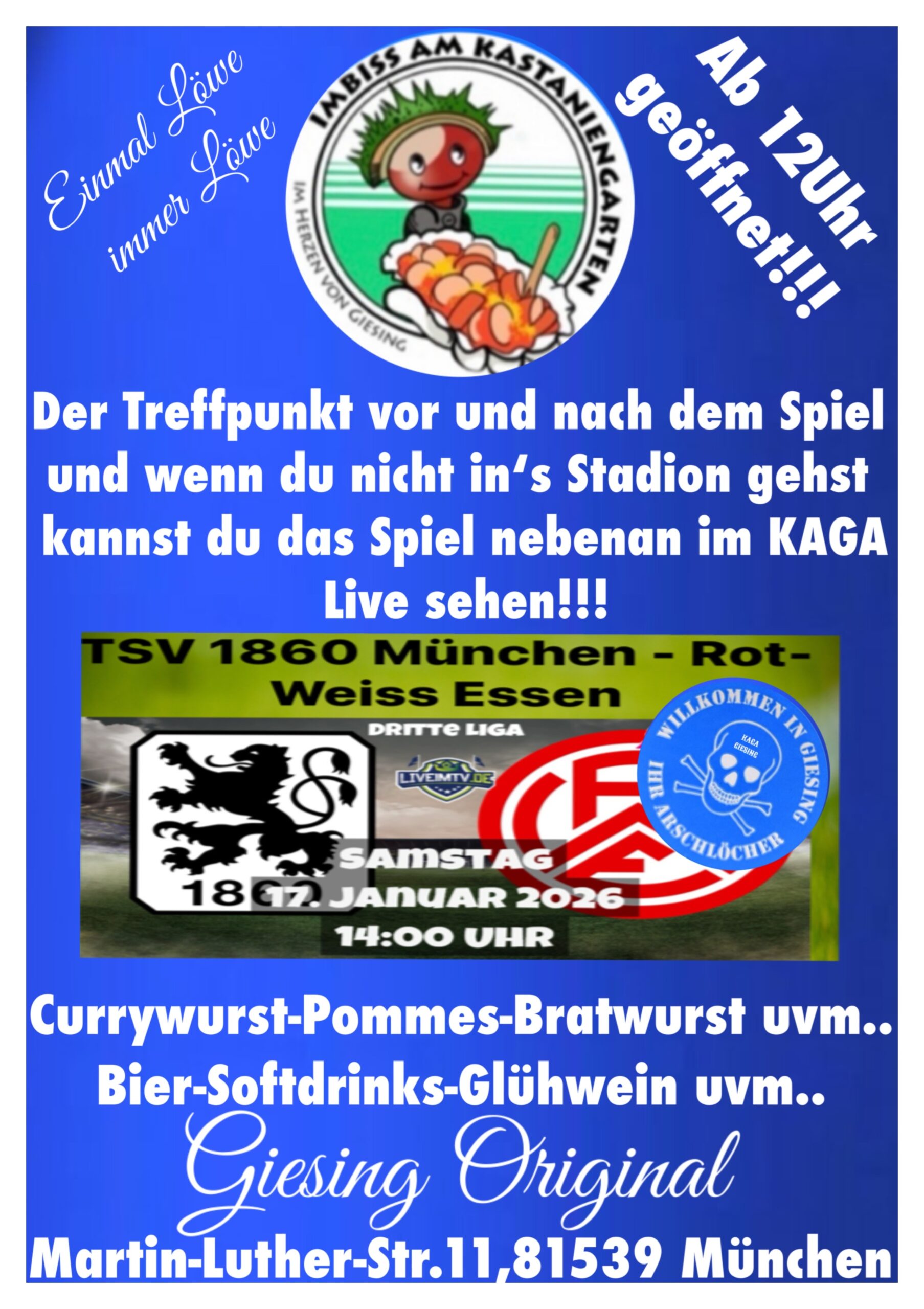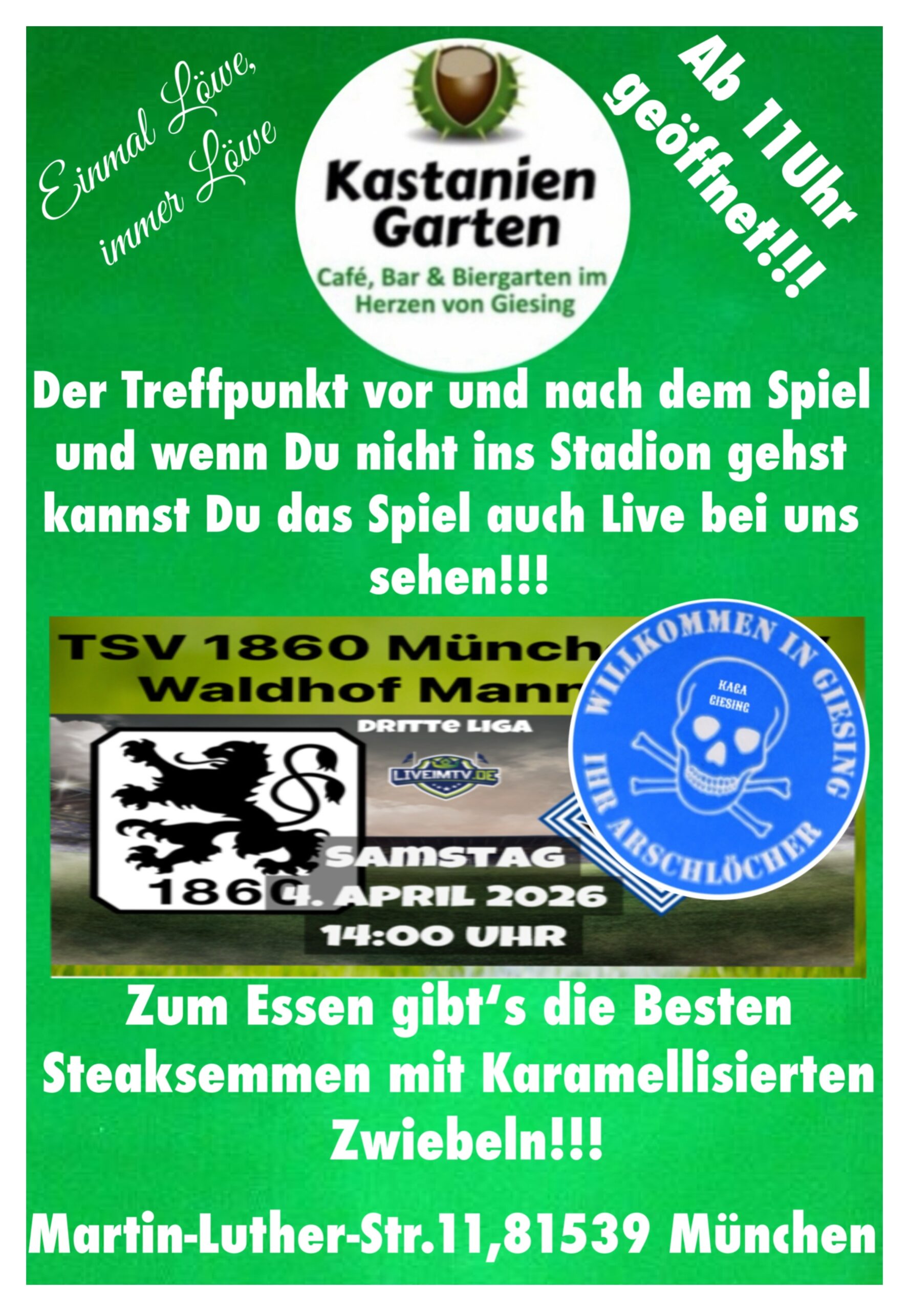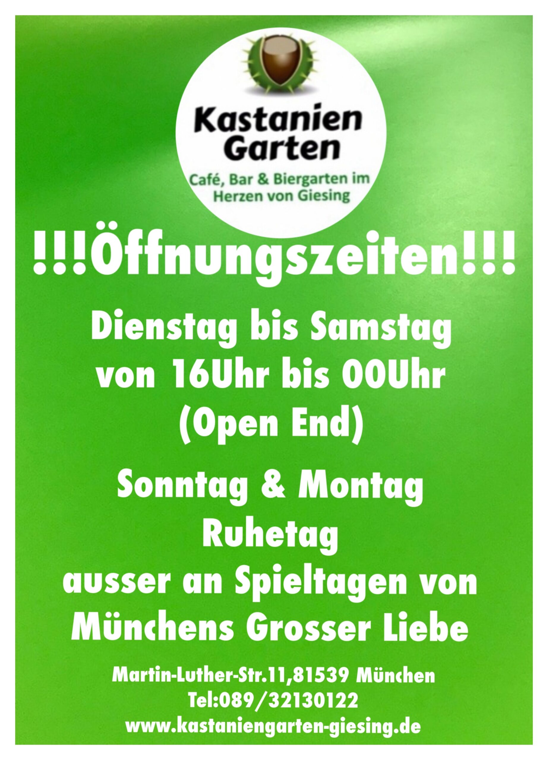 Sonntag & Montag sind Ruhetage (Außer an Spieltagen von 1860 München)