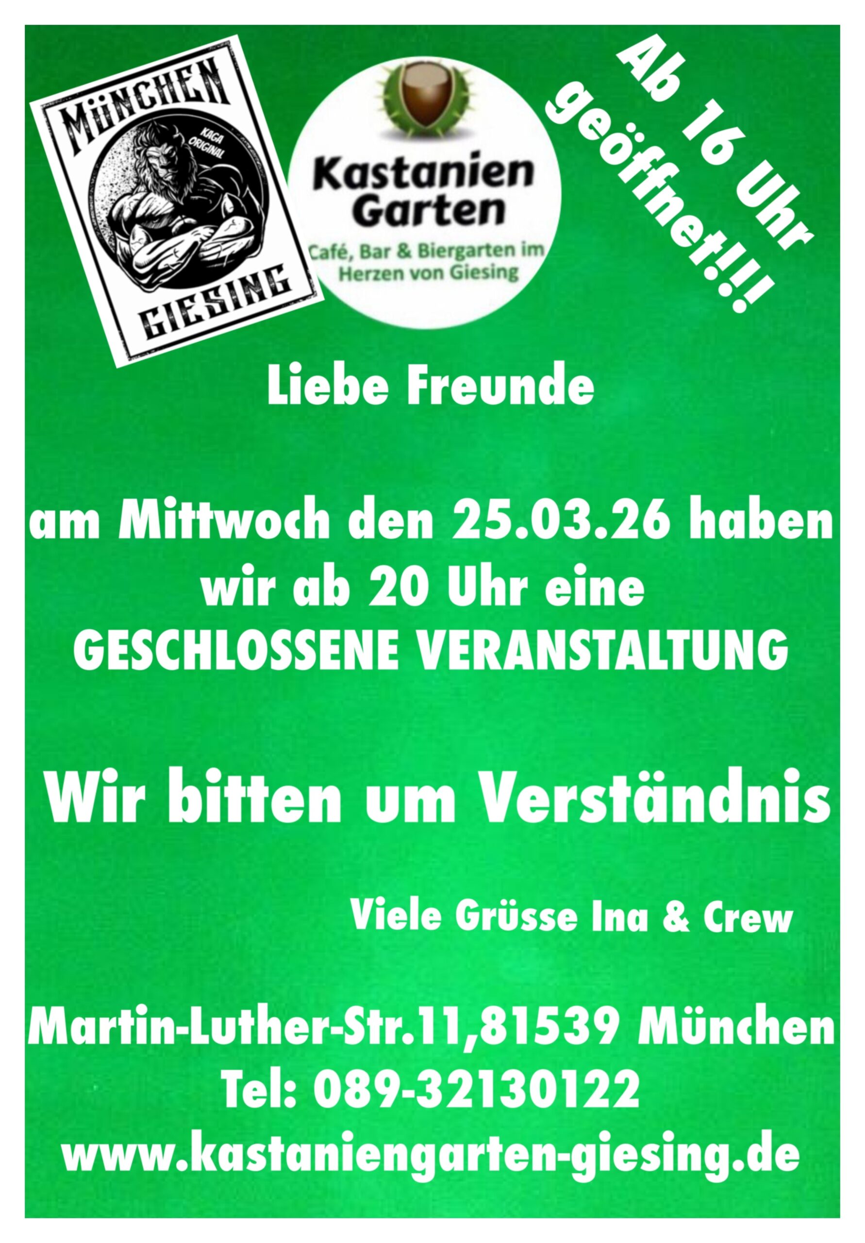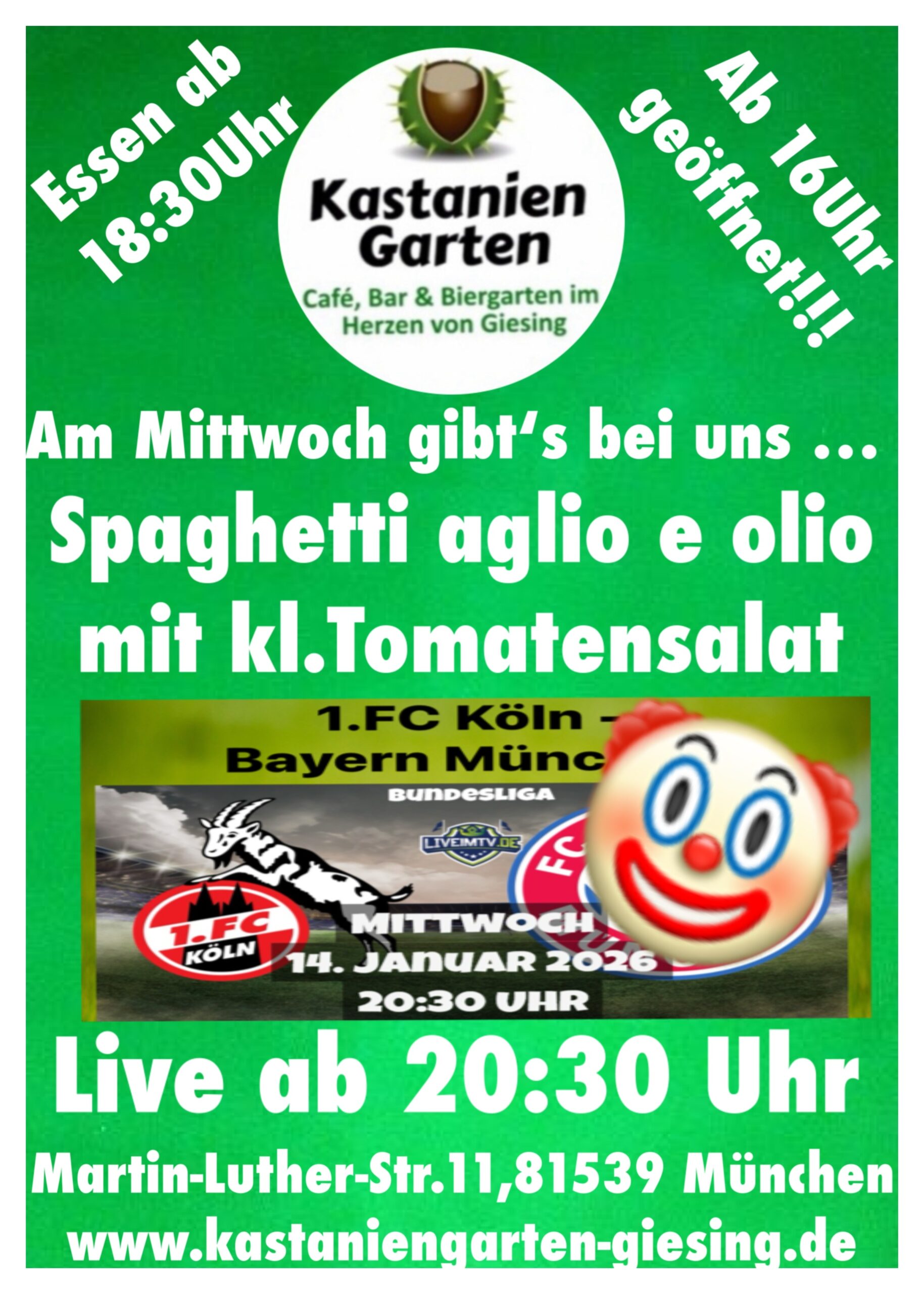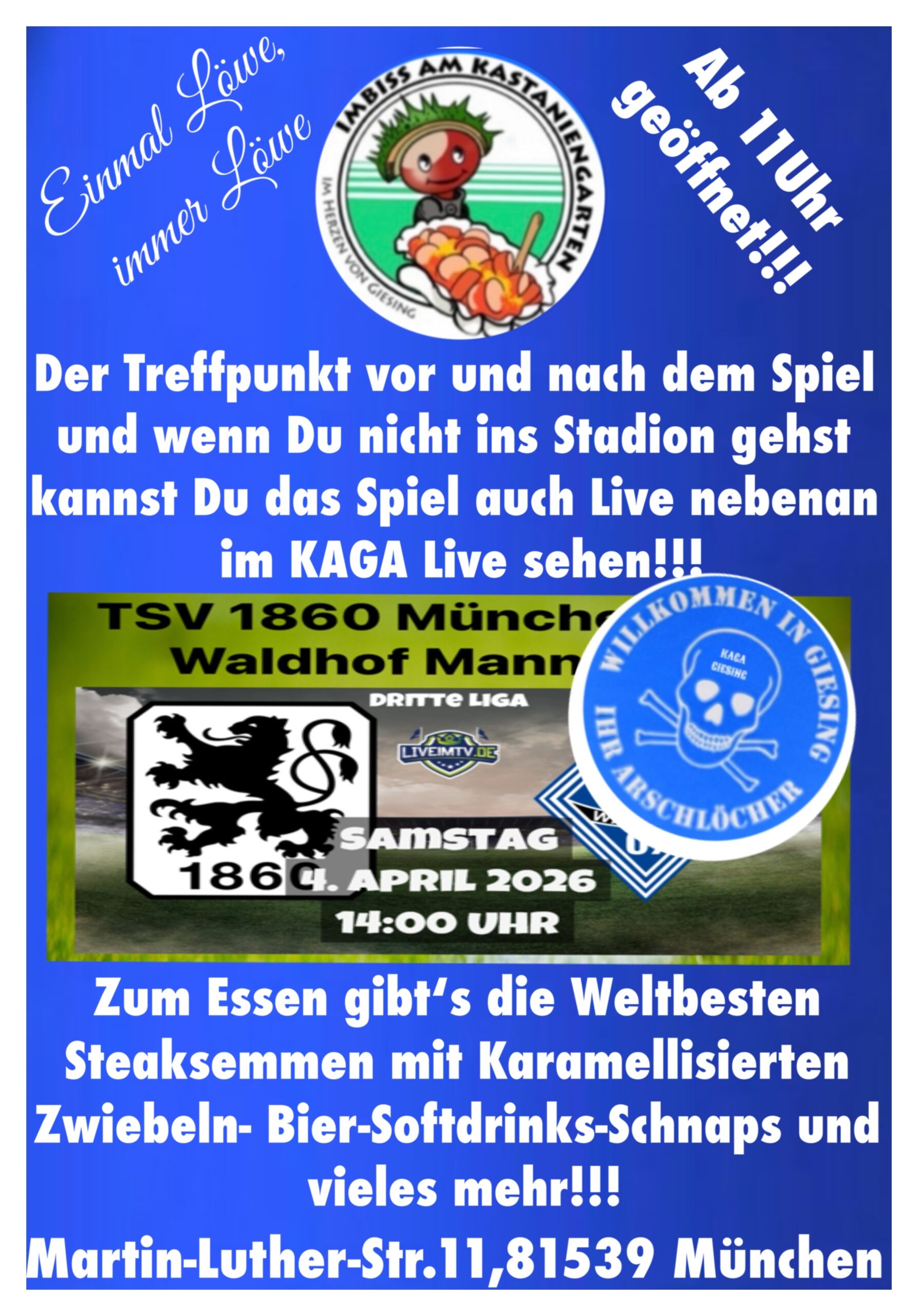 Sonntag & Montag sind Ruhetage (Außer an Spieltagen von 1860 München)